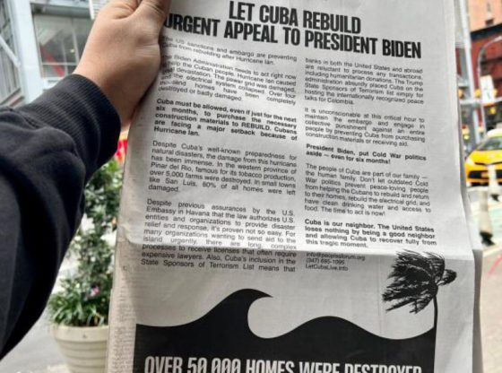 De tekst van brieven van burgers van de VS aan de regeringsleiding van hun land om de misdadige sancties tegen Cuba, hun buurland te stoppen, en Cuba’s opbouw van de door orkaan Ian getroffen regio’s niet te dwarsbomen. Een vergelijkbare oproep is geplaatst in de New York Times