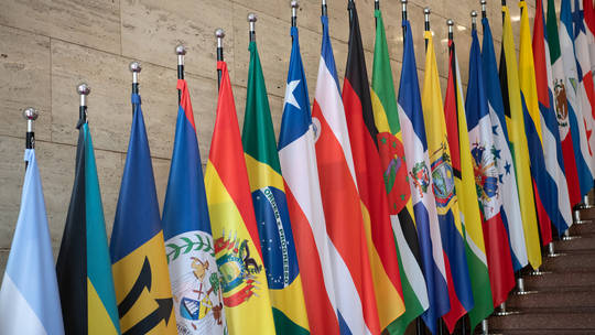 Topfoto: Vlaggen van Latijns-Amerikaanse en Caribische staten zijn uitgestald in een gebouw van het federale ministerie van Buitenlandse Zaken. © Global Look Press / Ralf Hirschberger